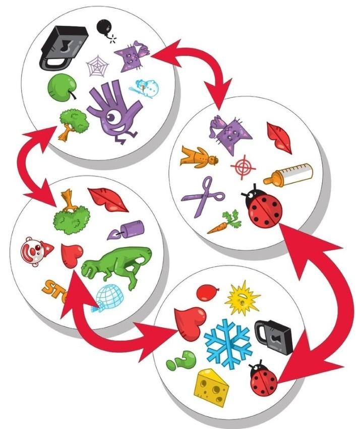 There is always one - and only one matching symbol between andy 2 cards in this game.