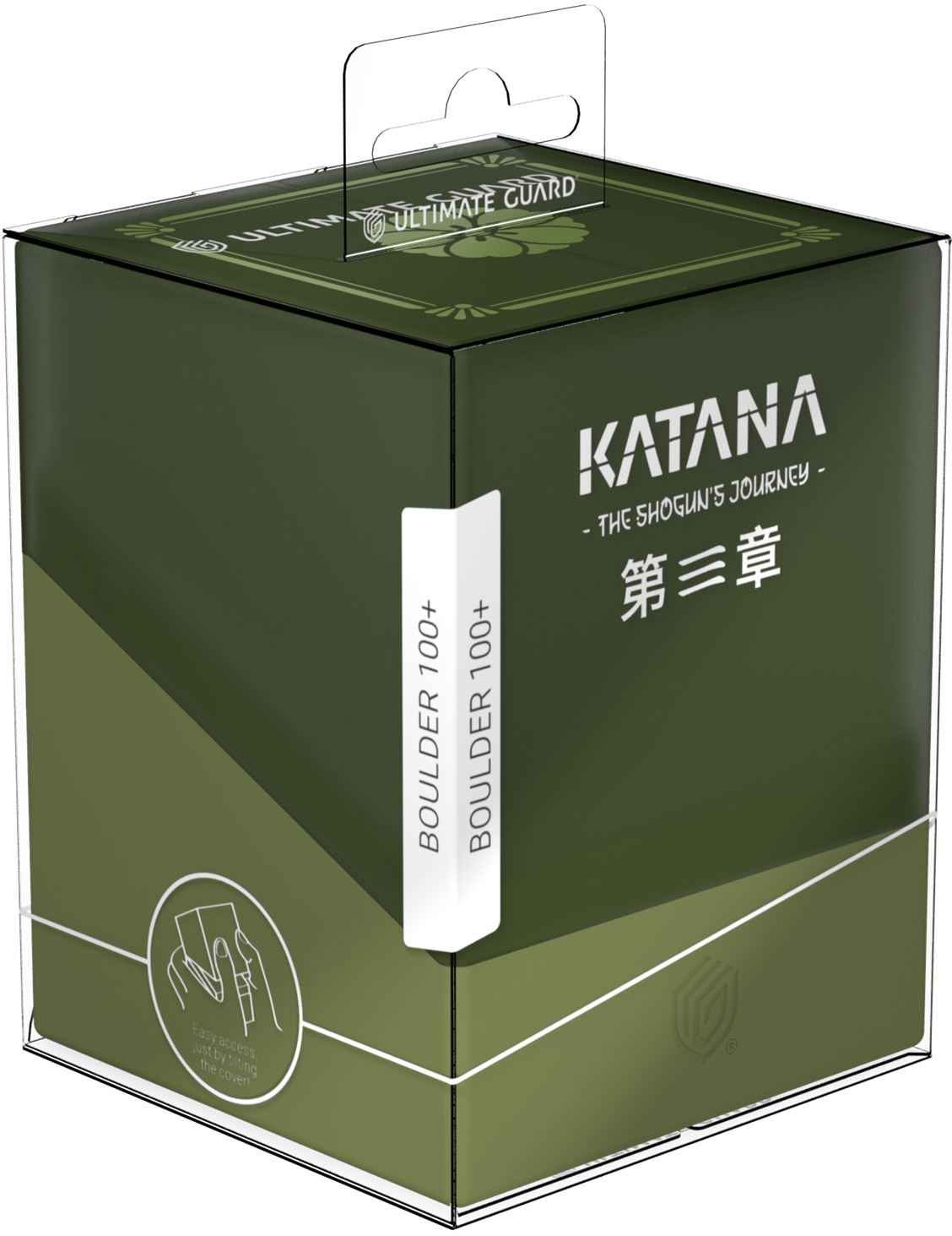 The Boulder 100+ from Ultimate Guard's "Katana: The Shogun's Journey" series is a durable and reliable deck box featuring our popular soft-touch surface. Despite its secure closure, the Boulder 100+ is easy and convenient to open and holds 100 double-sleeved cards in Ultimate Guard sleeves* from trading card games like Magic: The Gathering, Pokémon, Lorcana, Flesh and Blood, Yu-Gi-Oh!, and One Piece. Designed to combine with all Ultimate Guard mass storage boxes, these Boulder 100+ deck boxes perfectly fit into the Arkhive 400+ Xenoskin from the same series.