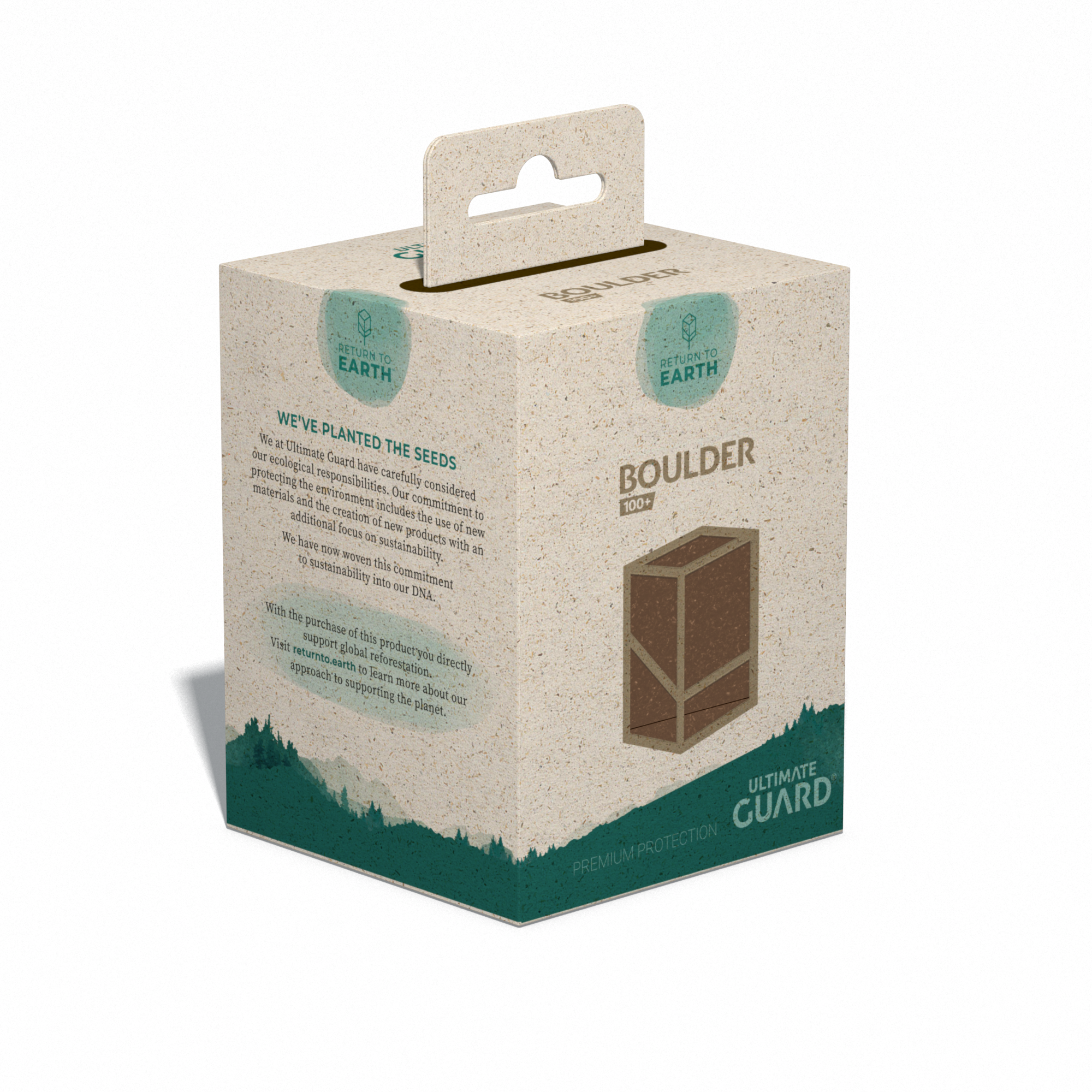 Developed and produced in Germany, this handy and solid Boulder 100+ with super-easy opening consists of 97% renewable resources, with a FSC certified grass paper packaging. The deck case is recyclable and holds up to 100 double-sleeved or 120 single-sleeved cards when using Ultimate Guard Sleeves.
